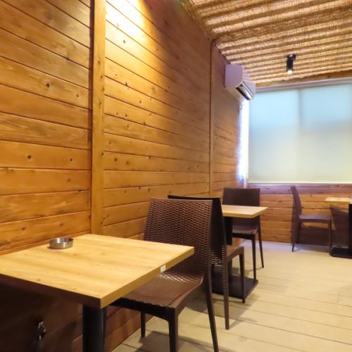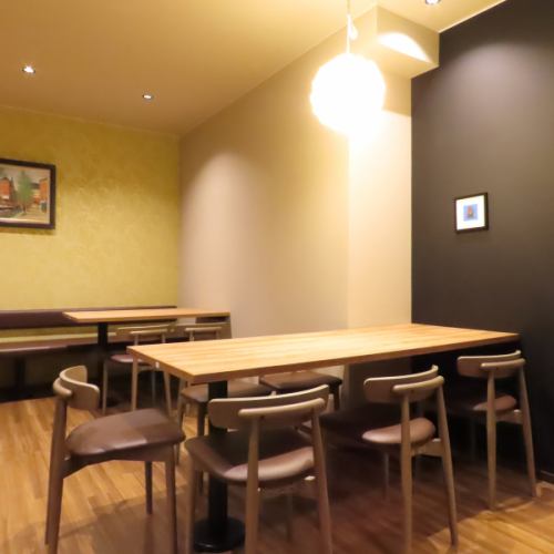 店内は木目を基調とした落ち着いた雰囲気。居心地よく、ゆっくりと食事や会話を楽しめます。
